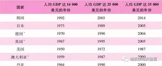 图2-2:主要国家人均收入超过3000美元后的增长时间和发展路径