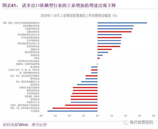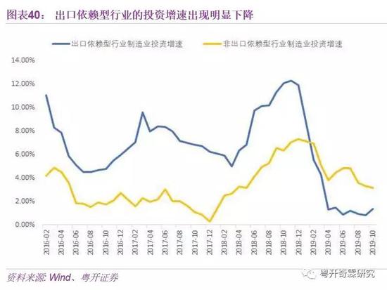 而贸易摩擦对出口部门的影响也比较显著。一方面,在贸易战打响后,出口依赖型行业的投资增速出现了明显下降,且下降幅度远远大于非出口依赖型行业。另一方面,纺织服装、家具、文教等出口依赖型行业的工业增加值增速较上年也出现了更明显的滑落。
