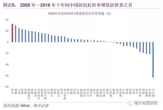 此外,2008年全球金融危机以后,世界上大多数发达国家如美国、日本、英国等家庭部门都处在去杠杆过程,但中国家庭部门的杠杆率不断攀升。2009-2018年10年间,中国居民部门杠杆率的增量位居全球之首。