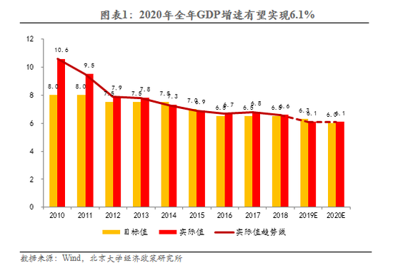 我们预测2020年GDP增长目标设定在6.0%左右,实际增长率将达到6.1%,顺利实现“决胜小康”目标。