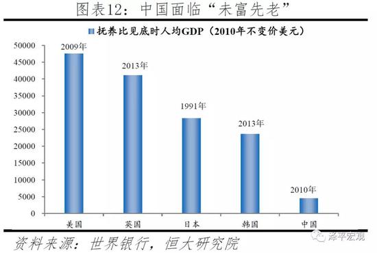中国将逐渐成为世界上养老负担最重的国家之一,严重拖累国家财政、制约经济活力。从城镇职工基本养老保险基金看,中国累计结余可支付时间从2012年的18.5个月逐渐下降至2017年的13.8个月,养老金抚养比(在职人数/退休人数)降至2.65。2017年有6省养老金入不敷出,15个省的累计结余可支付时间在10个月以下,7个省的养老金抚养比已降至2以下。其中,黑龙江养老保险基金从2013年开始持续“入不敷出”,2016年累计结余转负。并且,随着老龄化加剧,医疗支出压力也将越来越大。根据国家卫生服务调查,2003-2013年中国调查地区居民两周患病率(患病人次数/调查人数)从14.3%增至24.1%;其中65岁及以上人口患病从33.8%增至62.2%,2013年老年人口的患病率是平均水平的2.58倍。