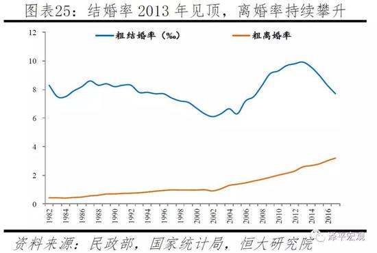 为什么不生?——生育基础削弱、生育成本约束。1)生育理论:从死亡率下降驱动到功利性生育意愿消退,再到成本约束。根据驱动生育率下降主导因素的变化,可将人类历史划分为四个阶段:一是高死亡率驱动阶段,人们需要以高生育率抗衡高死亡率从而保证收益最大化,总和生育率多在6以上。二是死亡率下降驱动阶段,低生育率也能保证收益最大化,总和生育率从6以上降到3左右。三是功利性生育消退阶段,人们的生育行为更接近情感需求,并重视子女质量提升,总和生育率大致从3降到2左右。四是成本约束的低生育率阶段,总和生育率降至更替水平2以下,低于意愿生育水平。2)晚婚晚育、单身丁克、不孕不育等削弱生育基础。中国结婚率2013年见顶回落,离婚率持续攀升;晚婚晚育现象日益突出,1990-2015年平均初育年龄从24.1岁推迟至26.3岁,主要初育年龄从20-27岁推迟到22-29岁。因婚姻市场匹配问题及单身主义等,“剩女”规模快速增加至约600万,学历越高“剩下”的概率越大。此外,丁克家庭、不孕不育人群增多削弱生育基础。3)住房教育医疗等直接成本、养老负担、机会成本高抑制生育行为,“生得起、养不起”。房价快速攀升,2004-2017年房贷收入比从17%增至44%;教育成本明显攀升,特别是公立幼儿园供给严重不足,1997-2017年中国公立幼儿园在读人数比例从95%降至44%。医疗费用持续上升,1995-2017年居民医疗保健支出上涨22.4倍。“四二一”家庭结构养老负担重挤压生育意愿。女性劳动参与率高但就业权益保障不够,导致生育的机会成本高。