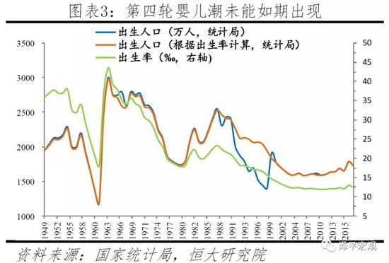 1)1949年以来中国出现了三轮婴儿潮,总和生育率从1970年代之前的6左右降至1990年的2左右,再降至2010年后的1.5左右,第四轮婴儿潮因长期严格计划生育未能如期出现。总和生育率指每个妇女一生平均生育子女数,但官方数据存在对低龄人口的漏登导致低估总和生育率。我们基于教育部门的小学生入学数据和漏报率修正了近年总和生育率。第一轮婴儿潮出现在1950-1958年,因新中国成立后人民生活安定、经济恢复发展、医疗卫生条件改善,出生人口年均2100万,峰值接近2300万(1954年),出生率基本在30‰以上,总和生育率平均5.3。1959-1961年三年困难时期,出生人口、出生率、总和生育率均大幅下滑。第二轮婴儿潮出现在1962-1975年,出生人口年均2628万,峰值超过3000万(1963年)。这其中既有三年困难时期过后的补偿性生育因素,也与文化大革命时期计划生育工作受冲击有关。不过,在1970年代“晚稀少”政策下,1970-1977年出生人口从1970年降至1789万,出生率从33‰降至19‰,总和生育率从5.8降至2.8,1980年更是低至2.3。第三轮婴儿潮出现在1981-1991年,出生人口年均2260万,峰值2550万(1987年),出生率大致在20‰-23‰之间,总和生育率平均2.3。之后出生人口逐渐降至2003年的约1600万,官方总和生育率降至1.4左右、修正后约1.6。第四轮婴儿潮应在2010年后出现,但因长期严格执行计划生育而消失,2010年官方总和生育率降至1.18,修正后仅1.5。