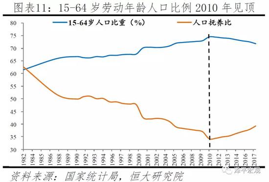 1)劳动力规模持续萎缩,2050年将比2018年大幅减少24%。1978年改革开放后,中国依靠庞大且年轻的劳动力资源,以及与之相关的巨大市场,快速成长为世界第二大经济体。1962-1975年第二轮婴儿潮人口是改革开放40年的建设主力,生产和储蓄多,消费少,导致储蓄率和投资率上升,储蓄超过投资部分产生贸易顺差,同时过剩的流动性和人均收入水平提高推动消费升级,经济潜在增速较高。在长期低生育率背景下,中国15-64岁劳动年龄人口比例及规模分别在2010年、2013年见顶,而日本、美国、英国的劳动年龄人口比例分别在1991、2009、2013年见顶,当时的人均收入远高于中国。2018年中国劳动年龄人口降至约9.9亿,中国就业人员总量首次出现下降。按照当前趋势,到2050年中国劳动年龄人口将在2018年的基础上再减少2.4亿至7.5亿,即减少约24%。根据2010年人口普查资料,80后、90后、00后人口分别为2.19亿、1.88亿、1.47亿,90后比80后少约3100万,00后比90后少4100万。随着劳动力供给总量持续萎缩,劳动力成本将日益上升,部分制造业已经开始并将继续向东南亚、印度等地迁移。从边际上看,中国人口红利已经结束,面临“未富先老”局面,未来储蓄率和投资率将逐渐下降,消费率将逐渐上升,经济潜在增速下滑。从绝对水平看,当前中国人口总抚养比约40%,未来一段时间仍处于人口负担相对较轻的“人口机会窗口期”(小于50%)。