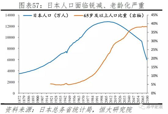 日本从1990年代开始鼓励生育,但2016年总和生育率仍停留在1.4,低生育率导致日本人口于2008年见顶、2100年将比峰值减少53%,并且老龄化高龄化程度为全球之最。日本总和生育率1950年为3左右,1974年持续下降至2.05,2005年为1.26、为历史最低,2016年仅回升至1.44,尚未回到理想水平。在长期的低生育率背景下,2008年日本人口见顶,为1.28亿。根据日本统计年鉴中的预测,到2050年日本人口将降至1.02亿、比峰值减少约20%,到2100年日本人口降至不到6000万、比峰值减少53%。并且,日本是全球老龄化高龄化程度最严重的国家,1950-2017年65岁及以上人口占比从4.9%快速增至27.7%,其中80岁及以上人口占比从0.4%增至7.0%;预计2050、2100年日本65岁及以上人口占比分别达37.7%、38.3%。