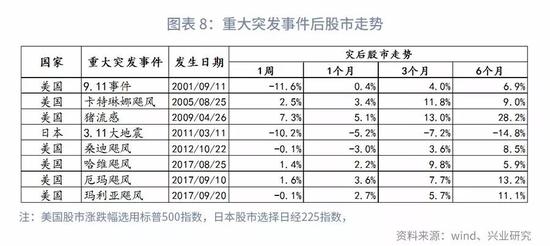 总体来看,较为严重的事件冲击,其对经济增速、股市表现都会有更强的拖累。而这种影响达到一定程度时,可能会对整个经济结构发生较大的影响。9.11事件动摇的是国际社会以及美国本身对于美国自身体制的信心,极大地改变了美国国家战略,对美国经济结构的影响深远。而3.11大地震造成日本巨大的经济地震,随之而来的福岛核危机更进一步强化了地震的影响。日本的电子产业、半导体产业、旅游业、能源业遭受到了全面的打击(张玉来,2011)。震后日本的经济结构也经历了漫长的调整和重塑。因此,货币政策宽松十分坚决。而飓风、洪水这种灾害的短时冲击虽然大,但是伤筋不动骨,对于经济结构的影响、经济发展路径不会产生明显冲击,货币当局更多考虑的是短期流动性的保障。