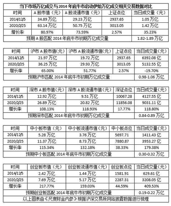 对比历史数据的背后,我们就会发现,如果以2月25日的成交量来对比,中小板成交量已经大幅超过了上一轮牛市启动初期的成交量指标约30%;而创业板已经大幅超越60%,并已经达到了2015年杠杆牛市股灾前夕的成交档量和热度。
