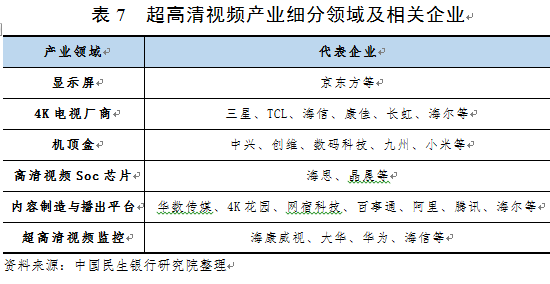 三是在应用领域,内容制造与播出环节的华数传媒、4K花园、网宿科技、百事通、阿里、腾讯等平台将各显神通。据悉,腾讯通过自制和引入方式破解内容瓶颈,推动更多的应用场景落地;海康威视、大华、华为、海信等企业在安防监控、工业制造、医疗健康等领域开展了超高清视频行业应用解决方案的探索;海尔、阿里推出国内首个幼儿社交平台,包括4K动画片和AR互动教学。