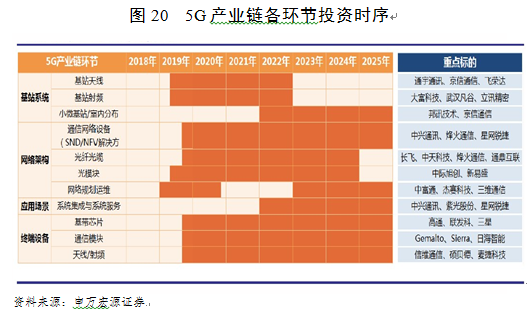 图20 5G产业链各环节投资时序