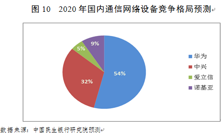 国内通信网络设备呈现华为、中兴、爱立信、诺基亚四足鼎立局面,2017年四家市场份额分别为50%、29.8%、8%和11.2%。随着国内5G商用进程加速,运营商在5G初期(2020年前)大概率采取独立组网方式(SA),华为中兴等本土企业将在5G发展初期占据先发优势;而在5G建设中期(2020-2025年),运营商出于成本考虑将通过独立组网非(NSA)实现大范围覆盖,由于NSA组网下需要将4G基站升级为5G基站,而各厂商设备又并不通用,因此这一阶段四家市场份额将阶相对保持稳定。总体来看,在5G时代本土主设备商国内市场份额有望进一步提升,预计到2020年四家市场份额将分别为54%、32%、5%和9%。