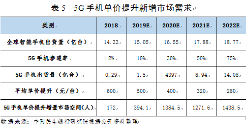 与此同时,换机潮也将改变手机零组件的创新和升级。例如毫米波带来的应用将有可能使得滤波器和终端系统侧的天线结构数量变多,陶瓷和玻璃机壳在5G 通信以及无线充电上优势明显,被动元件的需求量将提升。