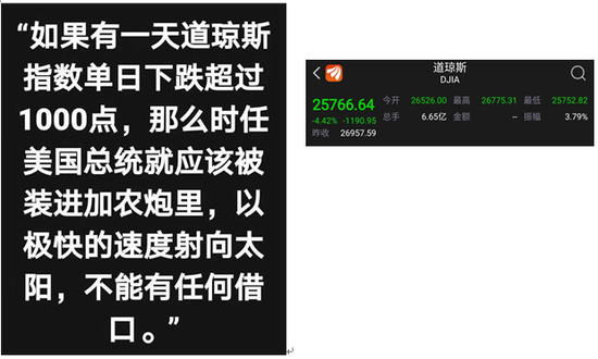 这就很好地解释了为什么美国经济面非常强劲的情况下,美股泄洪般连跌数日。以下这段话是2015年特朗普自己说,如今的道琼斯跌到猛打总统特朗普的脸。