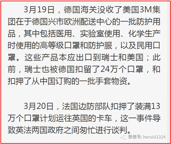 私底下欧美政府就真的不重视口罩问题吗?我告诉你,美国疫情加重后,做的第一件事情就是,豁免口罩等100多项自中国进口医疗产品关税。而不是督促大家去洗手。