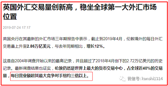 大家可能不知道,人民币最大的离岸交易中心,就是在伦敦,而不是香港。伦敦的离岸人民币交易量达到平均每天750亿美元,已取代香港成为全球第一大离岸人民币交易中心(英国在香港捣乱其中一个原因可能是要抢香港的金融货币生意),更值得关注的是,伦敦每天的离岸人民币交易量已经超过了欧元。