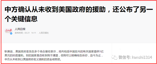 中国已经多次强调了“中方确认从未收到美国政府的援助”。大家应该想想,难道中国政府连自己有没有收到美国政府的援助都搞不清楚?为什么中国方面一定要强调这个呢?难道中国真的差这1亿美元的援助?