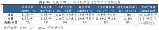 第一,放开市场准入,激发新的经济增长点,降低基础性成本。1)加速金融、汽车等传统保护领域的对内和对外开放。当前国内相关产业发展水平提高、行业格局稳定,允许和鼓励民营资本和外资进入有利于激发活力,促进传统行业转型升级,以竞争带动发展。2)放开上游能源、电力市场准入。当前我国基础性成本依然偏高,与上游能源行业国企垄断、竞争不充分有关。与美国相比,中国仅有劳动力具备价格优势,美国汽油、柴油、天然气、电力、工业用地、物流和劳动力成本分别为中国的75%、89%、30%、94%、39%、53%和654%。3)放开教育、医疗、养老等民生领域的市场准入。当前中国人口老龄化提速,2000年中国65岁以上老人占总人口比例为7%,2012年上升到9.1%,2019年达12.6%。养老问题日益突出,提前布局、开放民营资本进入有利于加速养老产业发展。