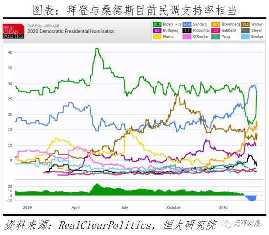 民主党内,拜登与桑德斯近期支持率不相上下。据综合民调网站RCP,拜登自2018年底参选时党内平均民调一直保持领先,桑德斯于2020年2月一度反超,但3月4日拜登民调以27.5:26的微弱优势再登榜首。
