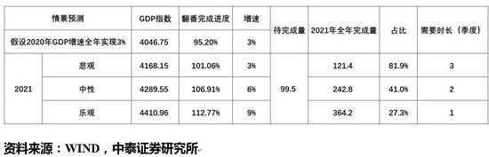 3、不应拿异常状态下的GDP去检视正常状态下的翻一番目标。若今年实现3%增长,不同情境下,翻一番目标延后1到3个季度即能完成,仅延后一个季度完成的可能性依然存在。