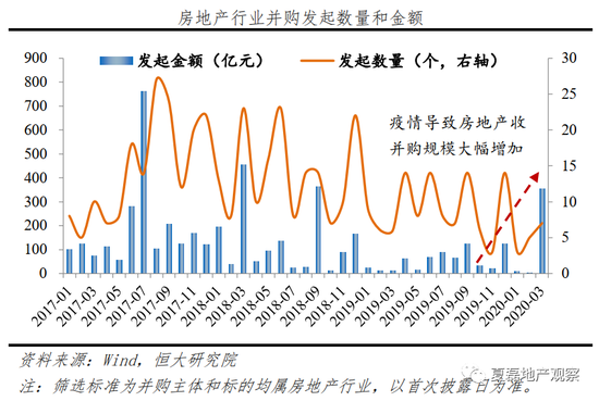 此外,疫情加速小房企退出,大房企顺势并购。根据Wind并购库,2020年一季度,房地产行业并购金额368.6亿元,同比增长702.4%。