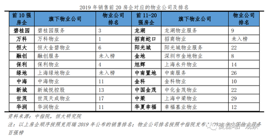 第三,品牌房企多有自己的物业公司,在社区安全保障、小区内部环境提升、硬件设施维护、上门维修、处理投诉等方面均有专门的物管团队,能及时满足业主的需求,提高居住体验。根据中指院发布的2019年中国物业服务百强榜,前20强物业公司中有14家隶属前30强房企,其中万科物业、碧桂园物业、恒大物业分别位列第一、第三和第六。
