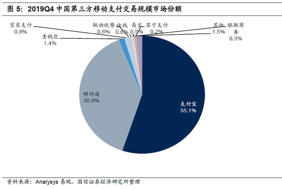 互联网金融构建了“生活+金融”的生态模式,即将金融服务渗透进客户的生活场景中,培养了用户在特定场景下使用金融服务的习惯。阿里系、腾讯系等互联网企业巨头搭建了社交、电商、衣食住行、教育、娱乐、医疗等丰富的生活场景,由于生活场景具有用户黏性强、活跃度高的优势,互联网企业App拥有了庞大的高活跃度流量,掌握场景和流量的互联网平台逐步将业务范围渗透到金融服务领域,培养了用户在特定场景下使用金融服务的习惯,随着生态圈的扩展完善和聚合效应的出现,用户的忠诚度明显提高,互金业务增长迅猛,部分金融业务甚至被互联网企业颠覆,最明显的就是支付行业。2019年第三方移动支付行业规模达226万亿元,其中,支付宝依托淘宝(天猫)电商场景、财付通依托微信社交场景发展成为支付行业的两大巨头。除了支付行业,互联网金融企业还将金融服务衍生到消费贷、理财等领域,余额宝、花呗等产品规模快速增长。据TransUnion统计,美国高风险个人贷款领域金融科技企业的市场份额就已经超过了银行,从2012年到2017年,金融科技企业的高风险个人贷款市场份额从3%增加到35%以上,银行市场份额则从35%降到约26%。