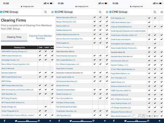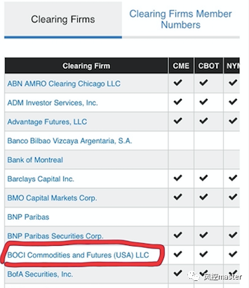 通过该图1及按照中行上述公告分析知悉,中行的意思是,中行的角色是收集你们的指令,将金融消费者的指令发送到CME,然后CME和中行结算,中行和金融消费者结算。在这种模式推断下,中行在这中间充当了经纪商的角色,而非其所说的做市商的角色。但是,这出现一个问题,笔者团队通过CME官网查询知悉,中行并非CME结算会员。见图2(https://www.cmegroup.com/clearing/financial-and-regulatory-surveillance/clearing-firms.html)