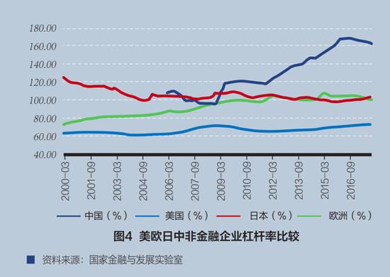 非金融企业的杠杆率和资产负债率的相对稳定是发达经济体经济的一个显著特征。然而,中国企业杠杆率变化却非常剧烈(见图4)。因此,稳定企业杠杆率,建立稳健的企业资产负债表是我们未来的任务之一。而当前,企业的杠杆率趋于稳定,实际上是归因于企业的投资下降,市场活力萎缩。从这点而言,企业杠杆率下降并非好消息。