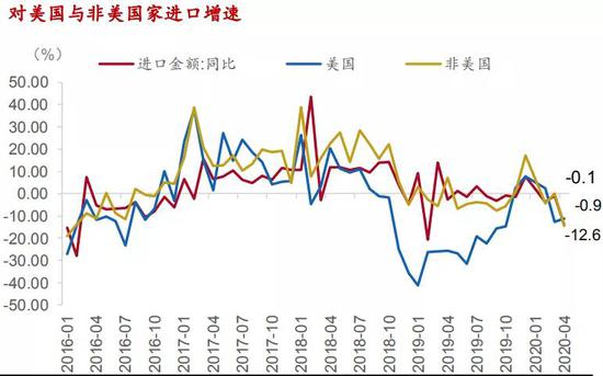 4月进口同比增速较上月下降13.2个百分点,主要原因一是疫情对海外产业链的冲击,二是原油等大宗商品价格低迷,三是内需疲弱。值得注意的是,4月我国内需已有所改善,但进口金额仍然环比收缩6%,指向海外疫情已通过冲击全球产业链对我国经济施加了显著的负面影响。