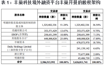 2020年5月5日,丰巢开曼宣布采用定向收购的方式整合中邮智递及“速递易”业务,整合完成后其估值已超过百亿元。王卫通过明德控股控制了丰巢开曼36.54%的股权,顺丰控股通过亮越公司持有9.75%,而三泰控股(002312.SZ)将其持有的34%中邮智递股权注入后仅持有丰巢开曼6.65%的股权。