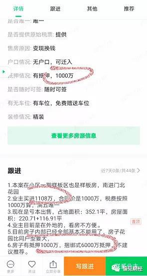 喏我挖到个笋盘,你看看。房主自称1108万买来,5年后现在挂1000万在抛。(当然我知道这个1108万是有水分的,评估高也能抵押了换更多贷款,但至少说明这套房5年了没怎么好好升值吧。)