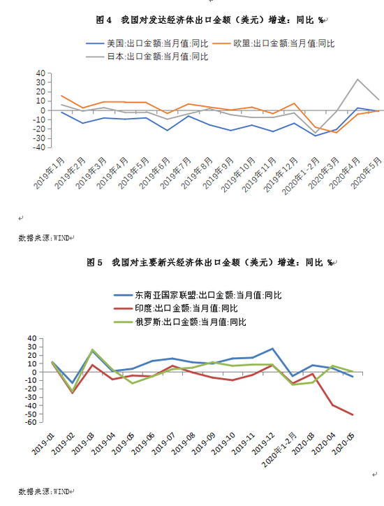 三、展望未来,虽然欧美经济开始尝试重启,但全球疫情蔓延态势仍在加剧,短期内我国出口有可能持续处于负增长状态,6月同比降幅甚至有可能进一步扩大。进口方面,伴随国内基建发力明显、地产投资恢复,将持续带动相关工业品进口需求,预计6月进口降幅将有所收窄。