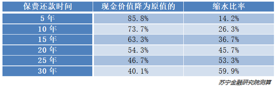 有人问,很多“保费返还型”保险承诺多年后退还保费,这不是免费服务吗?实际上,因为通货膨胀,多年后退还的保费现金价值会大幅缩水。