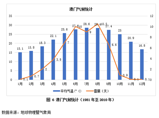 多数绿色康养项目仍处于启动初期,缺乏运营经验,尚未摸索出成熟的盈利道路,容易受到外部冲击。另外,由于绿色康养产业对生态环境和气候条件依赖性较强,产业营收容易出现相对不稳定的季节性变动。数据显示,澳门5月至9月雷暴天气频发,平均气温超出人体最适宜的温度范围(18℃-23℃)。气候条件不佳易导致行业消费需求体量减小,设备人员闲置,缩小盈利空间。