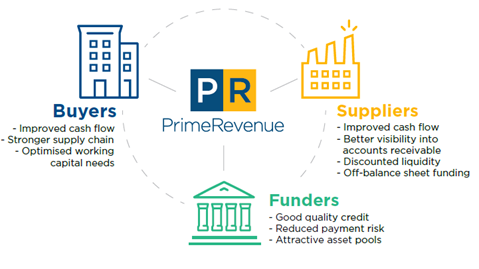 Prime Revenue成立于2003年,是营运资金金融技术解决方案的领导者。帮助80多个国家的30000多家客户优化其营运资本,以有效地为战略举措提供资金,获得竞争优势,并加强供应链的关系。Prime Revenue拥有最大、最多元化的全球融资网络,由100多个融资合作伙伴组成。Prime Revenue在一个基于云的、多语言的跨境网络上支持30多种货币,每年促成超过2500亿美元的支付交易。Prime Revenue是唯一一家提供实际操作、全天候全球支持和专利申请技术的供应链金融提供商。