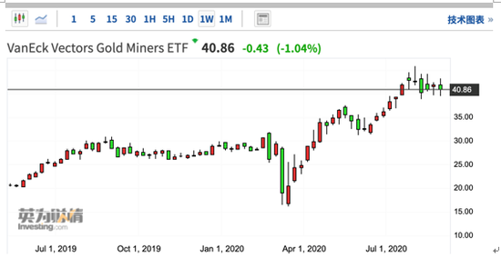 (图注:GDX截止9月8日周K线趋势图)