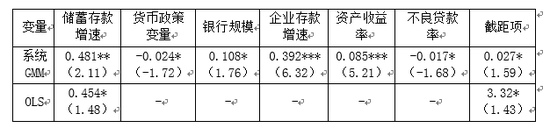 采用实证检验的方法能够充分印证上述分析的合理性。由于影响商业银行净利润的因素众多,需选择合理的控制变量(包括货币政策、银行规模、企业存款增速、ROA、不良贷款率)最大程度避免模型的内生性问题。根据表2的实证结果可以看出,储蓄存款增速的系数为正,表明储蓄存款增速与银行净利润增速存在显著的正相关关系,且两个模型均支持这样的结论(OLS和系统GMM)。在不考虑其他影响因素的情况下,居民储蓄存款增速每下降1个百分点,商业银行净利润增速将下降0.45个百分点(OLS模型)。
