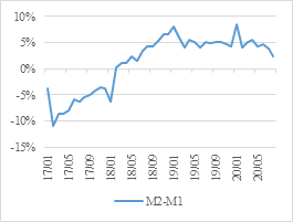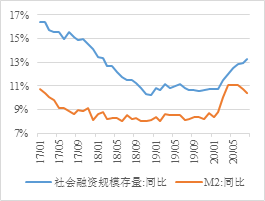 图1:社融增速与M2背离,M2-M1剪刀差进一步收窄