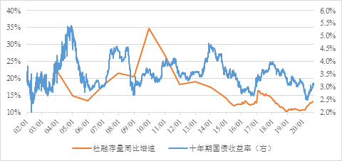 图6:国债收益与社融增速