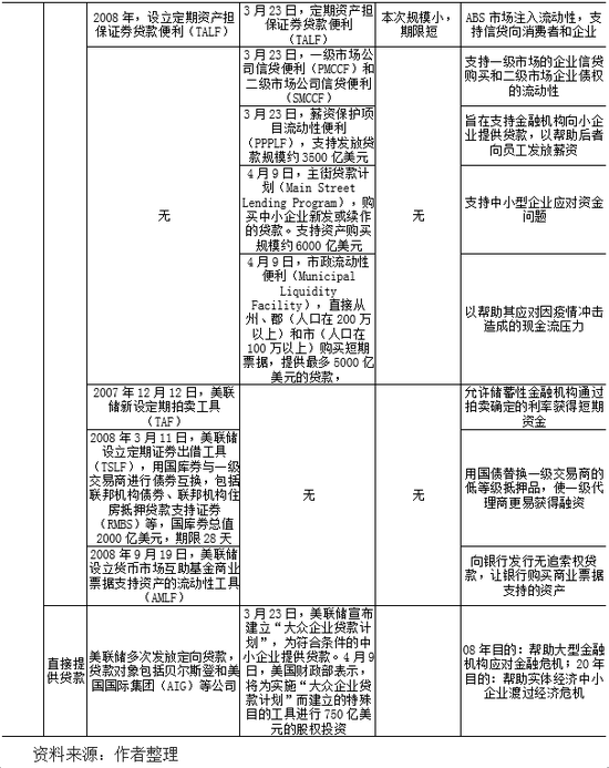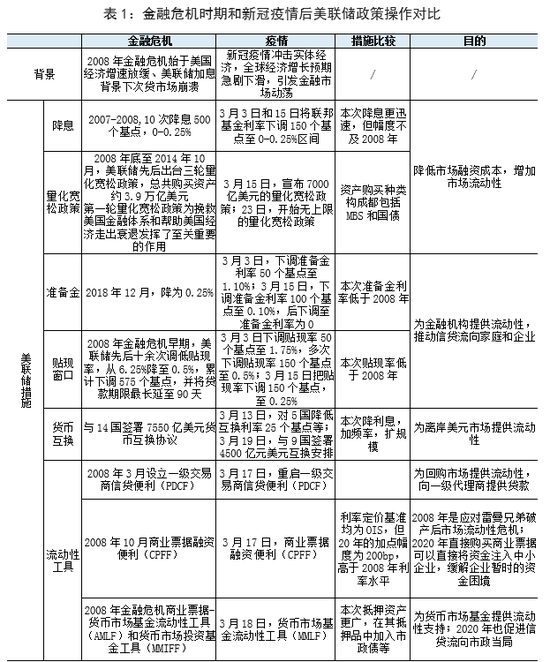 两次危机中美联储均推出降低利率和大规模投放流动性的操作。与金融危机时期相比,此次危机对实体经济冲击更为严重,因此美联储通过适度创新政策工具为企业和居民提供了针对性救助。总结来看,两次危机中美联储的操作具有三方面共同特征。