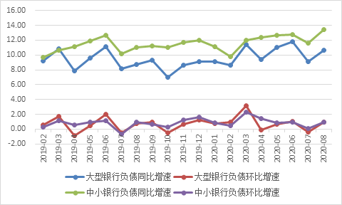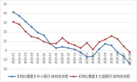 图5:大型银行和中小银行结构性存款余额增速 单位:%