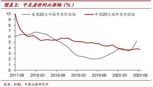 1、宽松来了,股市、房地产等资产都在涨价。尽管受到新冠疫情的影响,中美经济受到的冲击都很大,但在宽松货币的大背景下,今年两国资产价格的表现都非常亮眼。今年美国纳斯达克指数相比去年底上涨了33%,中国的创业板指数上涨了55%。截至8月末,美国20大中城市房价的同比涨幅达到了5.2%,远远高于去年底2.8%的涨幅。今年我国20大中城市的房价涨幅仍有3.7%,尤其是长三角、珠三角部分城市的涨价非常明显。
