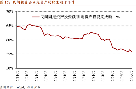 3.2. 固定资产结构:应该关注民间投资占固定资产投资的比重已经降至55.9%。这一比例的下降始于2018年,反映了中美经贸摩擦和新冠疫情对民间投资意愿的连续冲击,以及逆周期调节政策之下国有部门投资的上升。分行业来看,制造业投资增速2015年以来一直相对较低;基建投资增速2018年自以来也控制在年均增长3%以下,而2012至2017年在15%至20%之间;房地产投资年度增速自2016年以来基本稳定在8%左右,略高于名义经济增速,已经接近实现与国民经济同步增长。