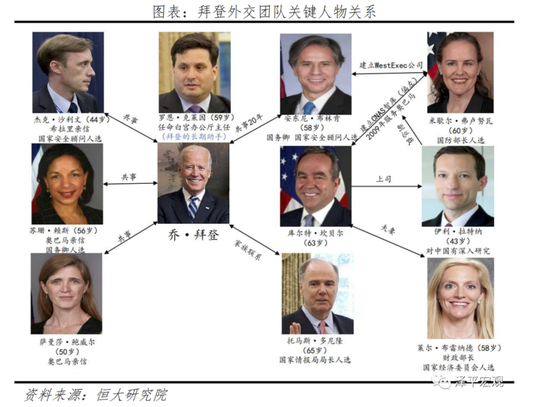 拜登的外交团队以奥巴马时期行政班底为主,呈现精英化、多元化特点。从学历来看,拜登外交团队成员多是毕业于哈佛、耶鲁等名校,其中哈佛最多。从性别和人种来看,拜登竞选团队中有色人种占35%、女性占比53%,符合拜登对组建多样性政府的要求。预计大量关键人物在拜登上台后将担任白宫要职,目前,拜登已确认罗恩·克莱因(Ron Klain)出任白宫办公厅主任。