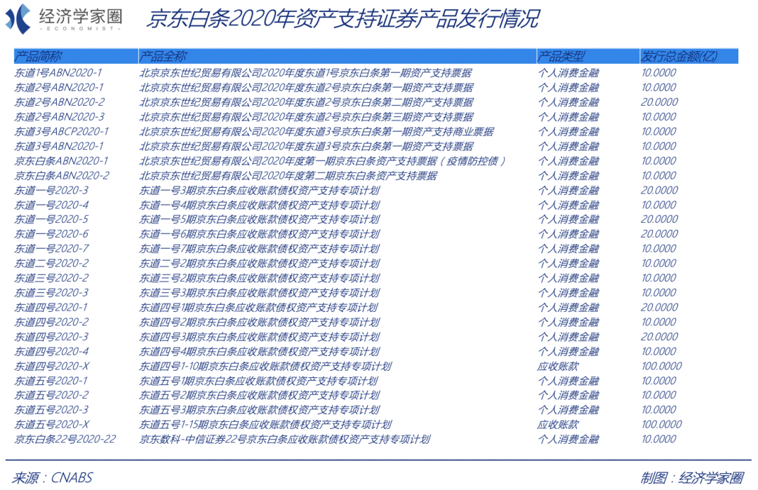 但是值得注意的是,据CNABS网站数据查询,京东白条标准化债权类资产形式融资,2020年共计募资500亿元。2019-2020年共计融资1015亿元,2015-2020年标准化债权融入约2000亿元资金。