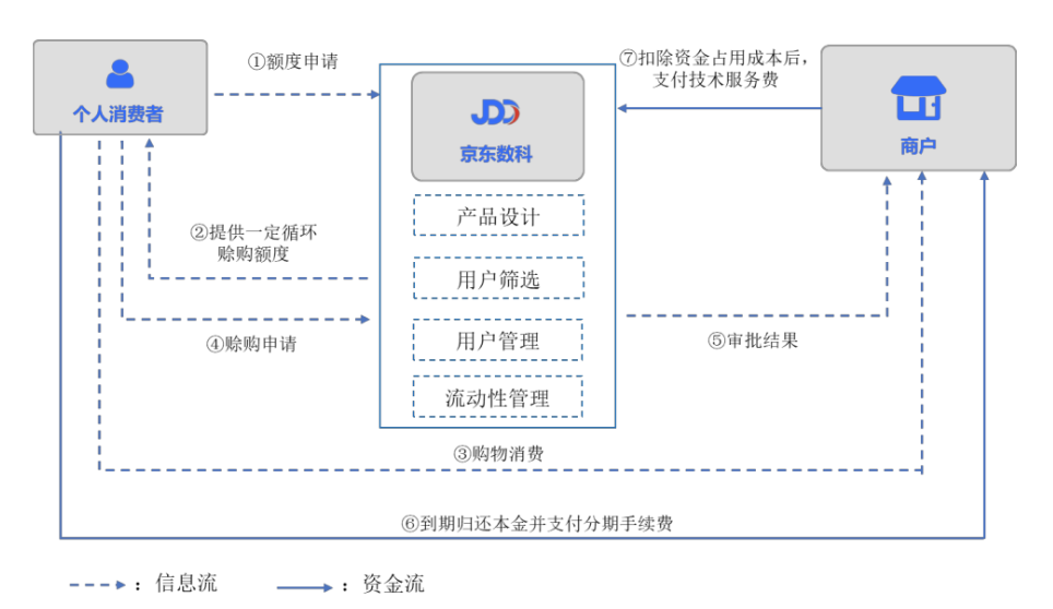 早前,在京东数科促成的信贷业务上(金条、白条、京小贷等小微企业贷),资本金主要由合作的金融机构和商户发放,京东数科主要收取一定比例的技术服务费,一定程度上符合当时政策的要求,同样也规避了承担放贷的风险。