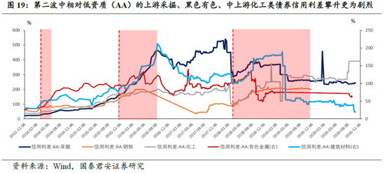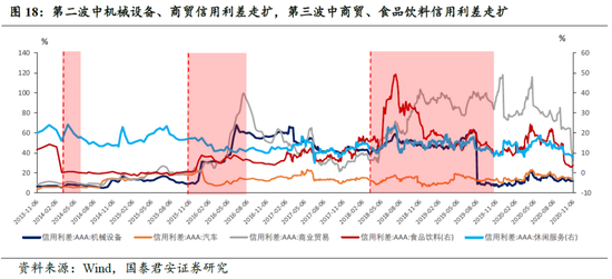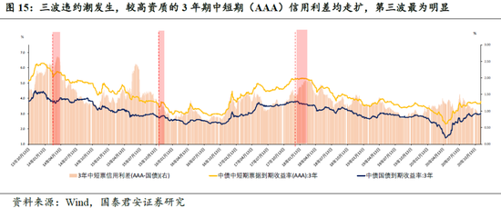 每一波违约潮的爆发都影响了市场风险偏好的改变,信用利差随之走扩并在不同行业和资质的主体中呈现明显的分化。随着重要违约事件的发生,市场逐渐开始对信用风险进行定价。