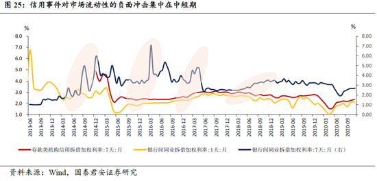 货币政策何时出手?取决于信用事件对流动性的冲击。我们认为,信用事件对市场流动性的负面冲击集中在事后1-2个季度。
