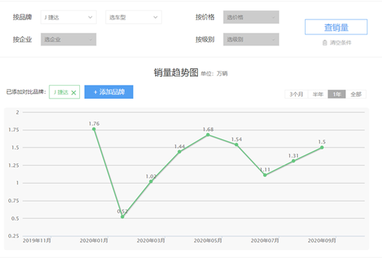 在成为独立品牌之前,老捷达一款车以32.66万辆全年销量成绩,成为大众品牌2018年年度销量冠军,也就是说,品牌独立前,老捷达的月均销量达到了2.7万辆。据搜狐汽车数据,独立后的捷达品牌有三款新车,今年最高月销量仅为1.76万辆,销量较老捷达相去甚远。