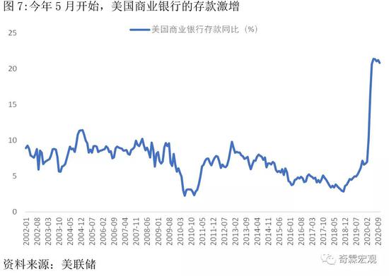 刺激政策使得美国家庭和企业部门的存款激增,今年5月开始,美国商业银行存款同比增速都在20%以上,远高于正常水平。这些存款背后的购买力,在推动消费恢复的同时,也成为消费回暖可持续的保障。