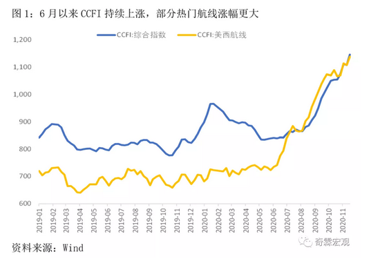 相比于宏观的出口数据,一些偏中观的行业指标,更能体现出口的火爆。最典型的是出口集装箱运价指数,疫情前这个指标不太受关注,主要是航运圈的人在看,金融机构的有时也会通过它来跟踪出口情况。